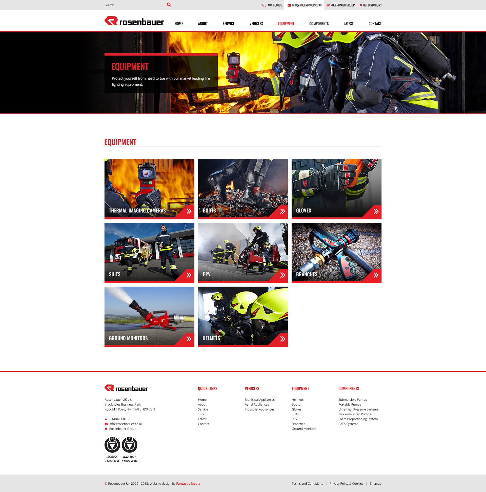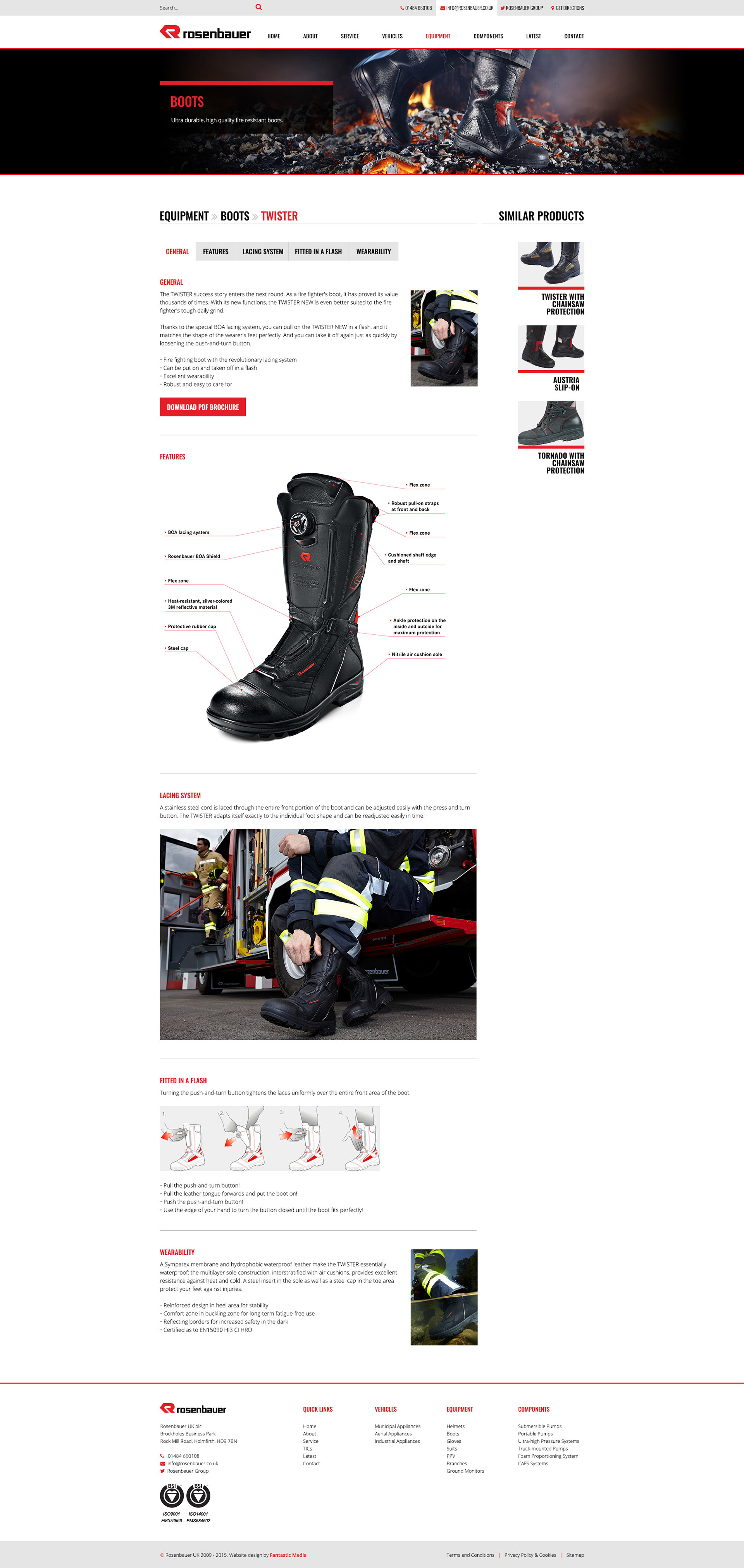 Website design for a firefighting product manufacturer, including vehicles, equipment and clothing.